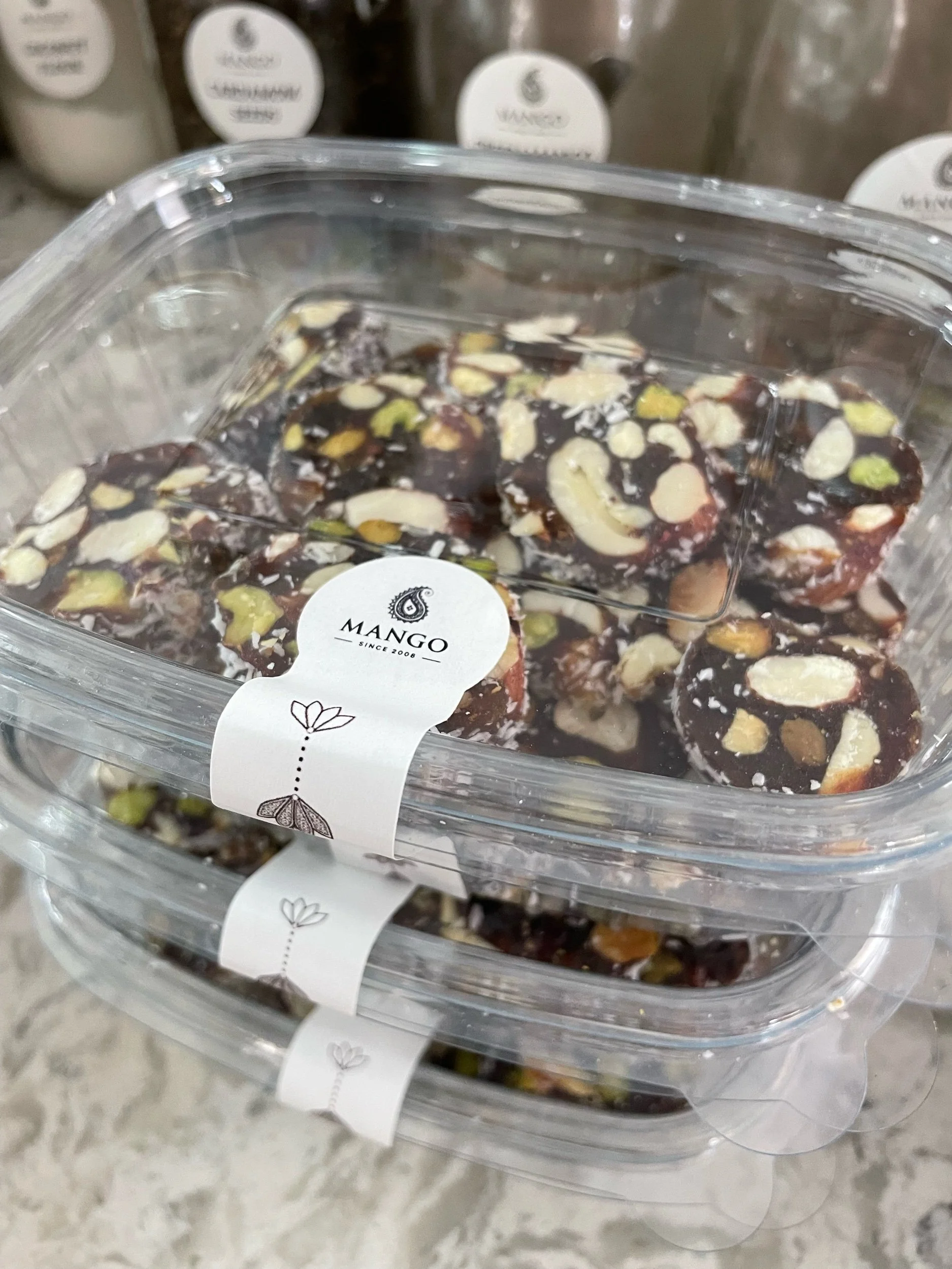 Contains Cashews, Pistachios, Almonds and Coconut.